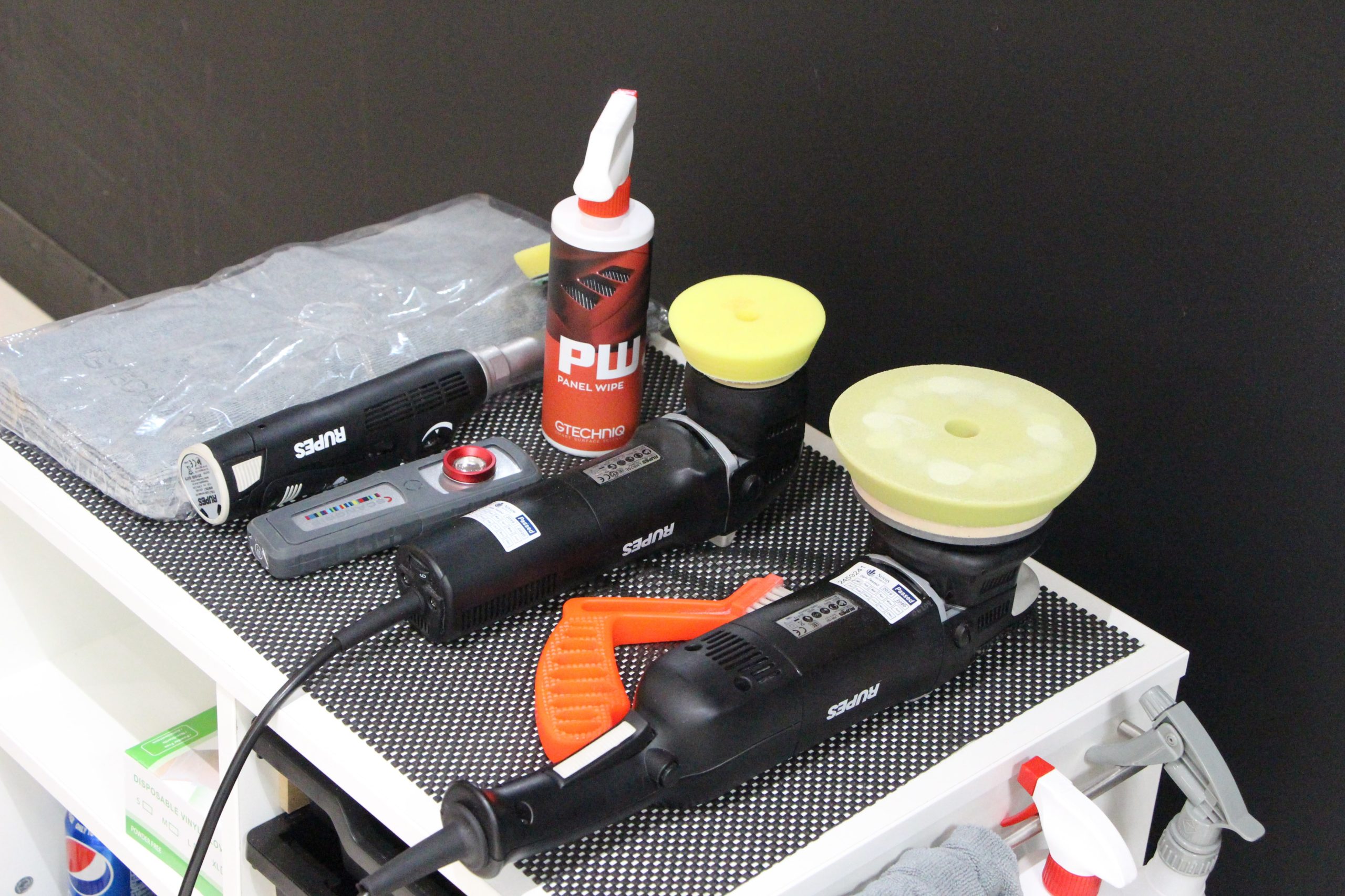 Une fois que le lavage de décontamination complet a été effectué et que le véhicule a été rincé et séché, il est temps de passer à l’étape suivante, à savoir la correction de la peinture. Cette étape consiste à éliminer les rayures, les tourbillons et l’oxydation de la peinture. Il existe un grand nombre de polish, de pads de polissage et de machines qui font un excellent travail. Veillez simplement à bien vous renseigner et à choisir une marque réputée.